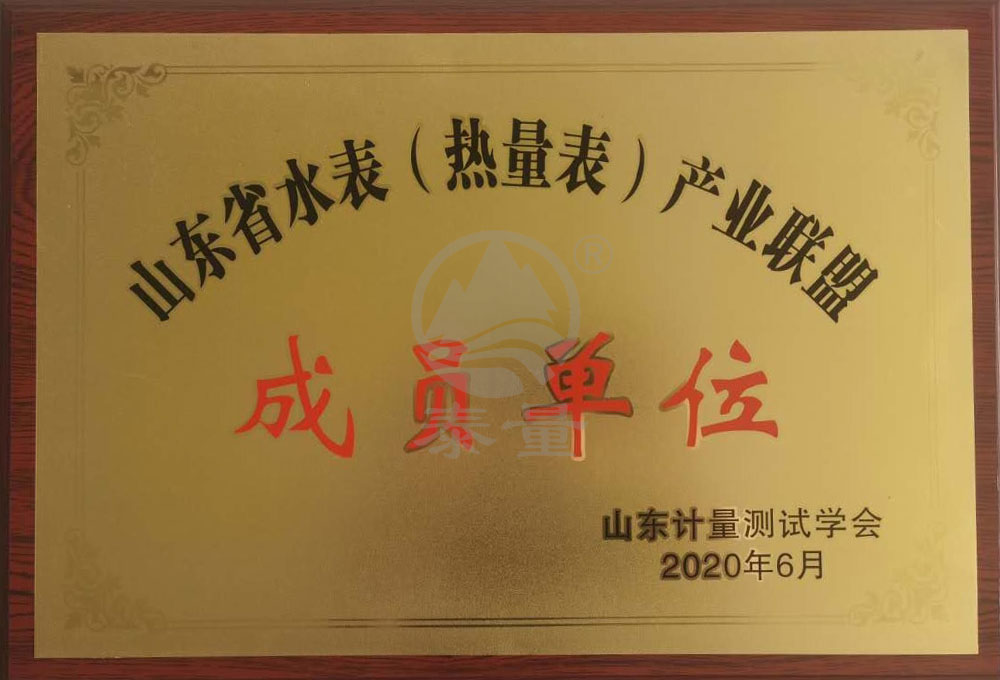 山東省水表產業(yè)聯(lián)盟證書
